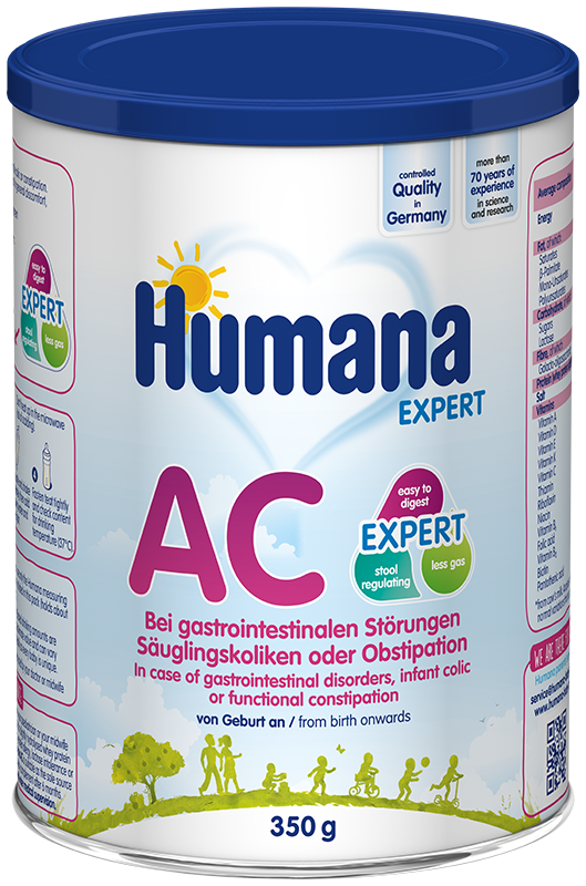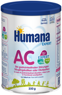Specjalnie opracowana formuła Humana AC do postępowania dietetycznego w przypadku kolki niemowlęcej, zaparć czynnościowych i powiązanych objawach.